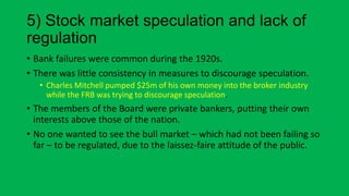 The flow continued right up until those fateful few days near the end of 1929 when it suddenly stopped. More goods were being produced than consumers could buy. He offered limited federal assistance directed primarily to businesses and banks.